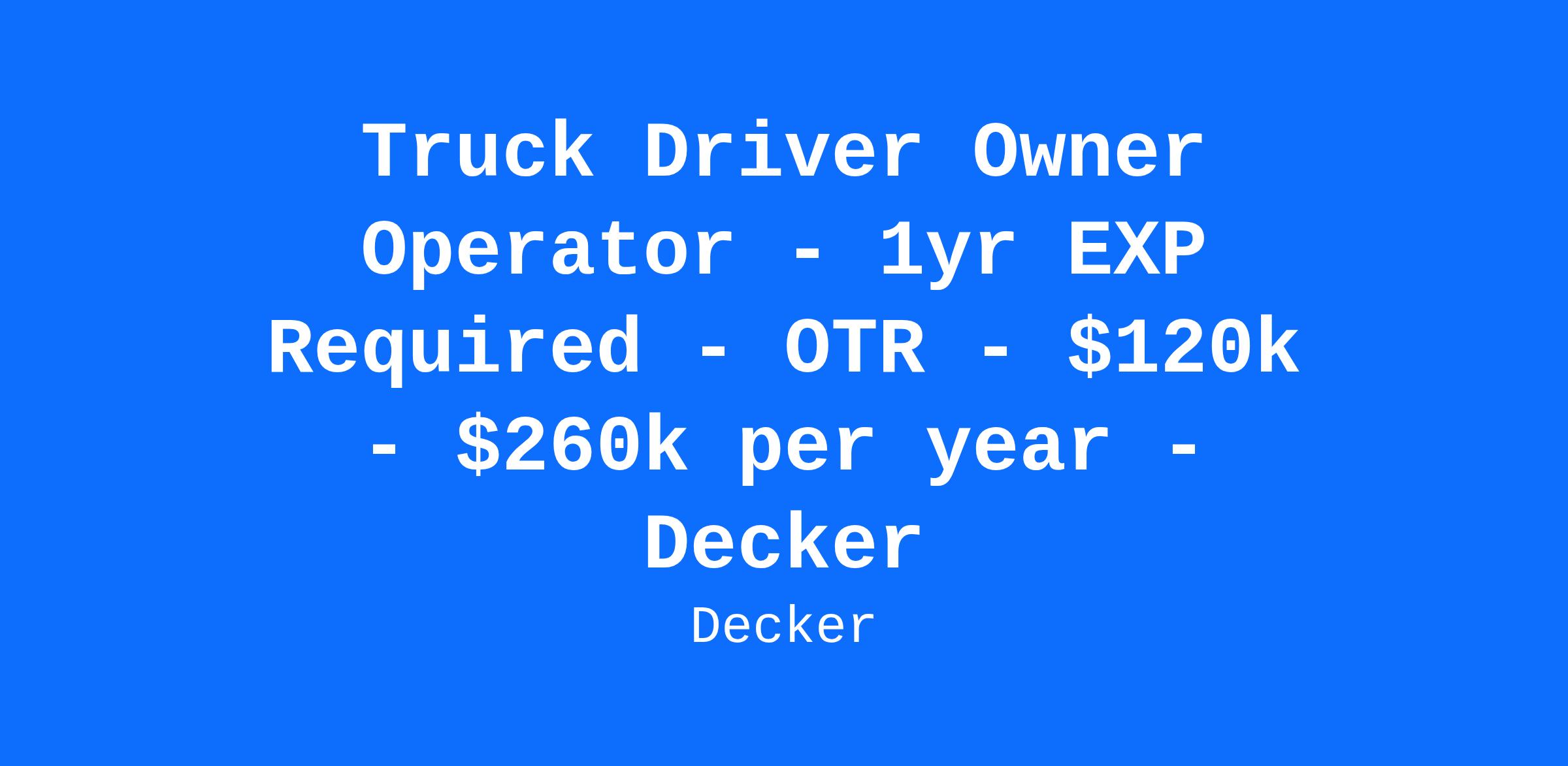 Truck Driver Owner Operator - 1yr EXP Required - OTR - $120k - $260k per year - Decker