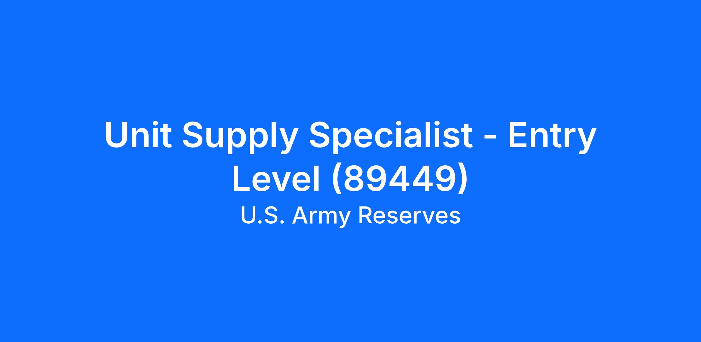 Unit Supply Specialist - Entry Level (89449)
