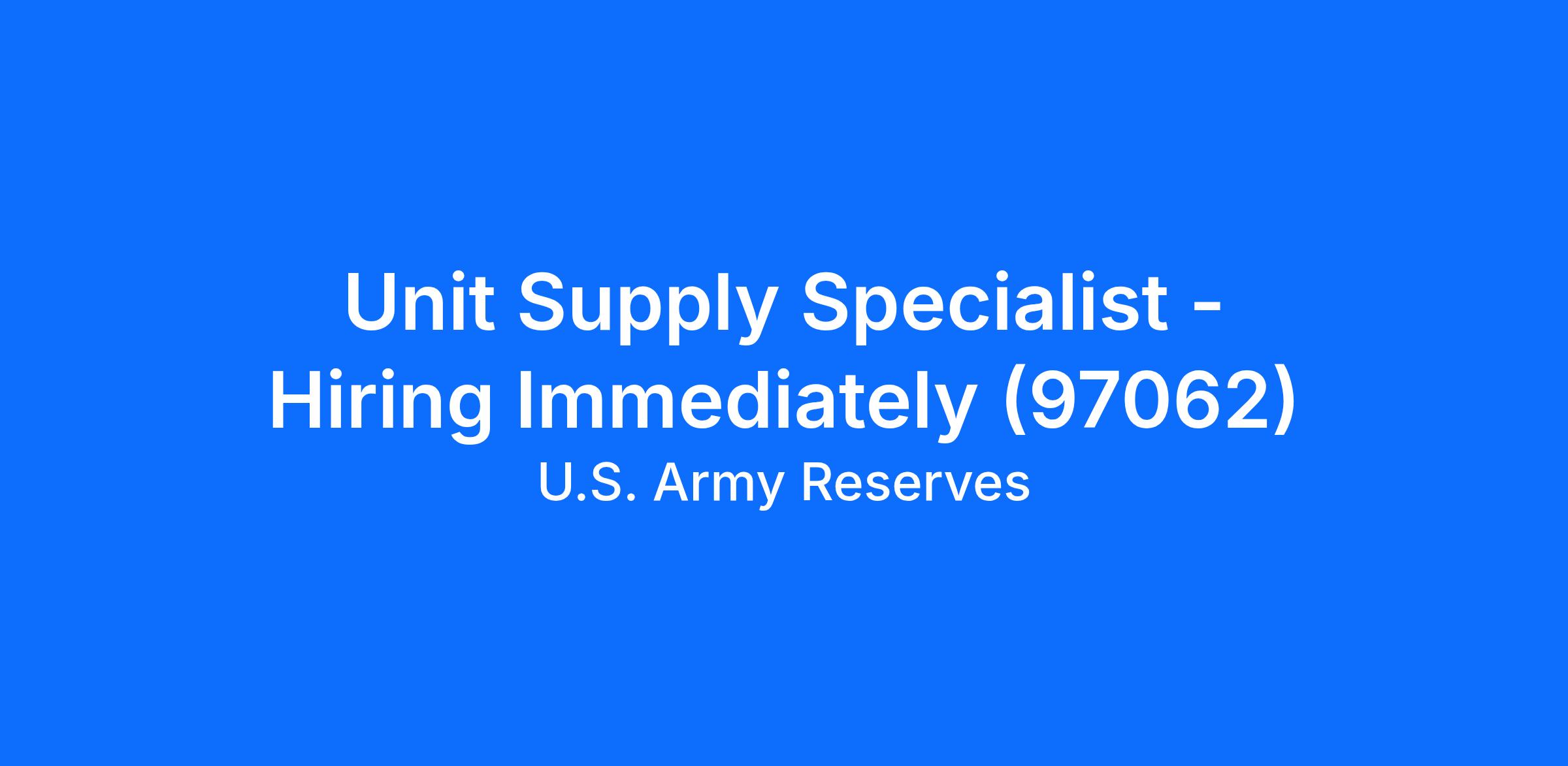 Unit Supply Specialist - Hiring Immediately (97062)