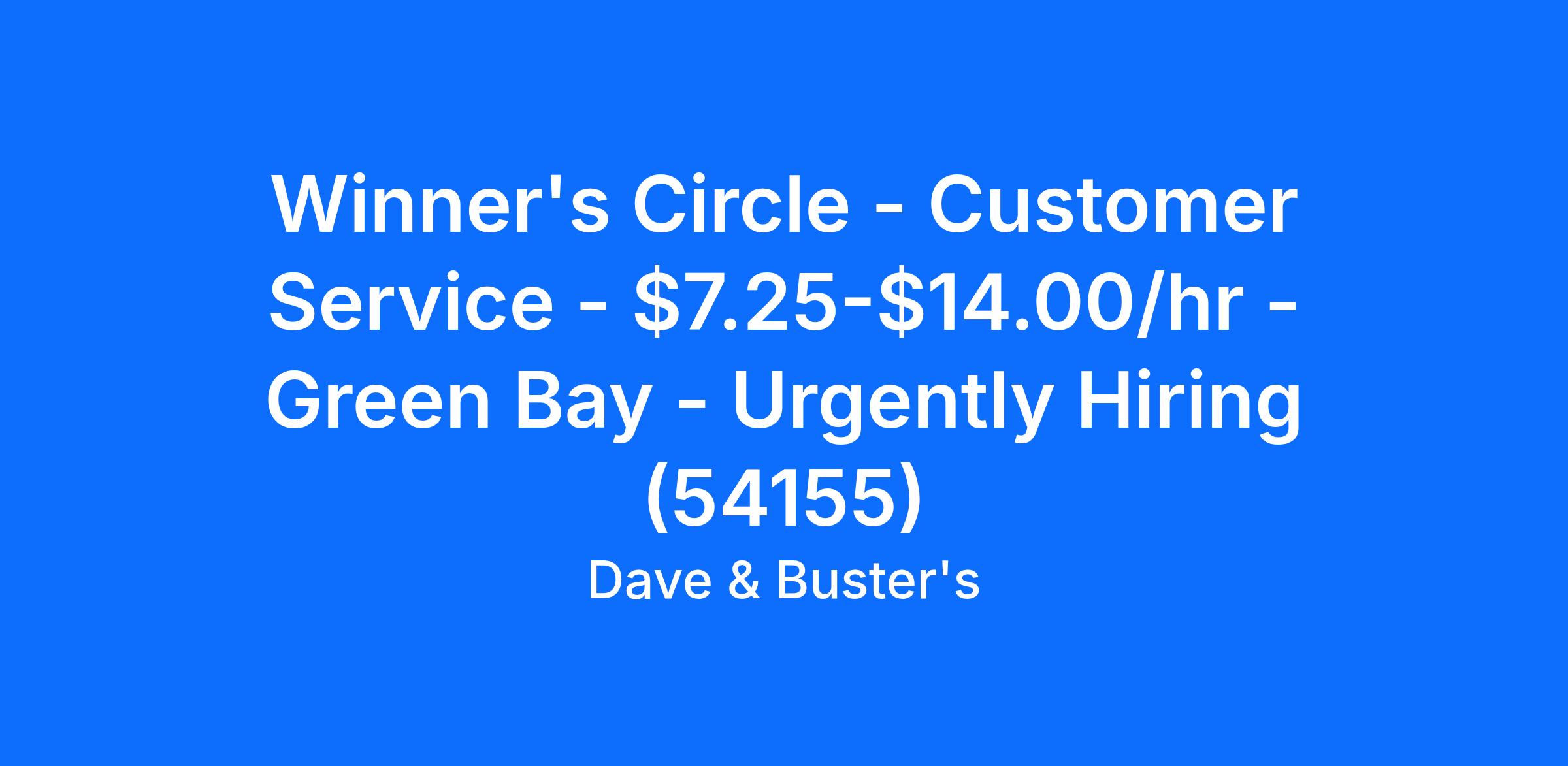 Winner's Circle - Customer Service - $7.25-$14.00/hr - Green Bay - Urgently Hiring (54155)