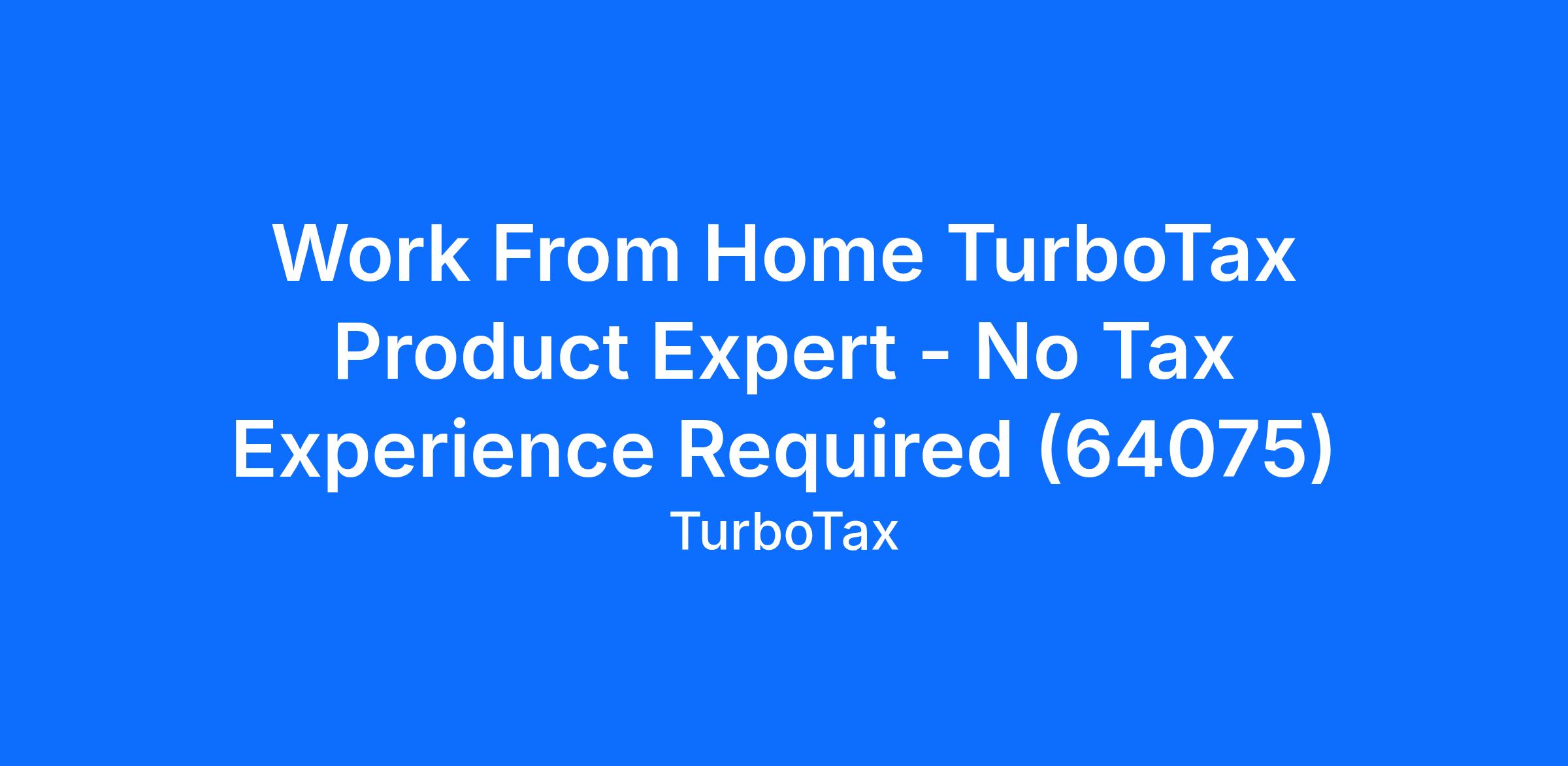 Work From Home TurboTax Product Expert - No Tax Experience Required (64075)