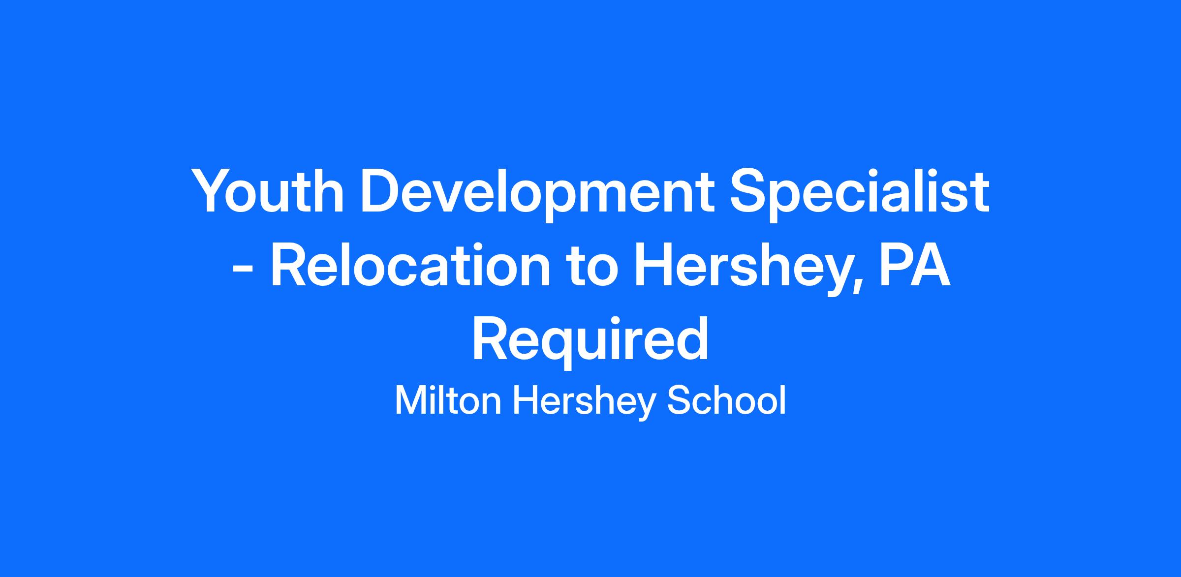Youth Development Specialist - Relocation to Hershey, PA Required