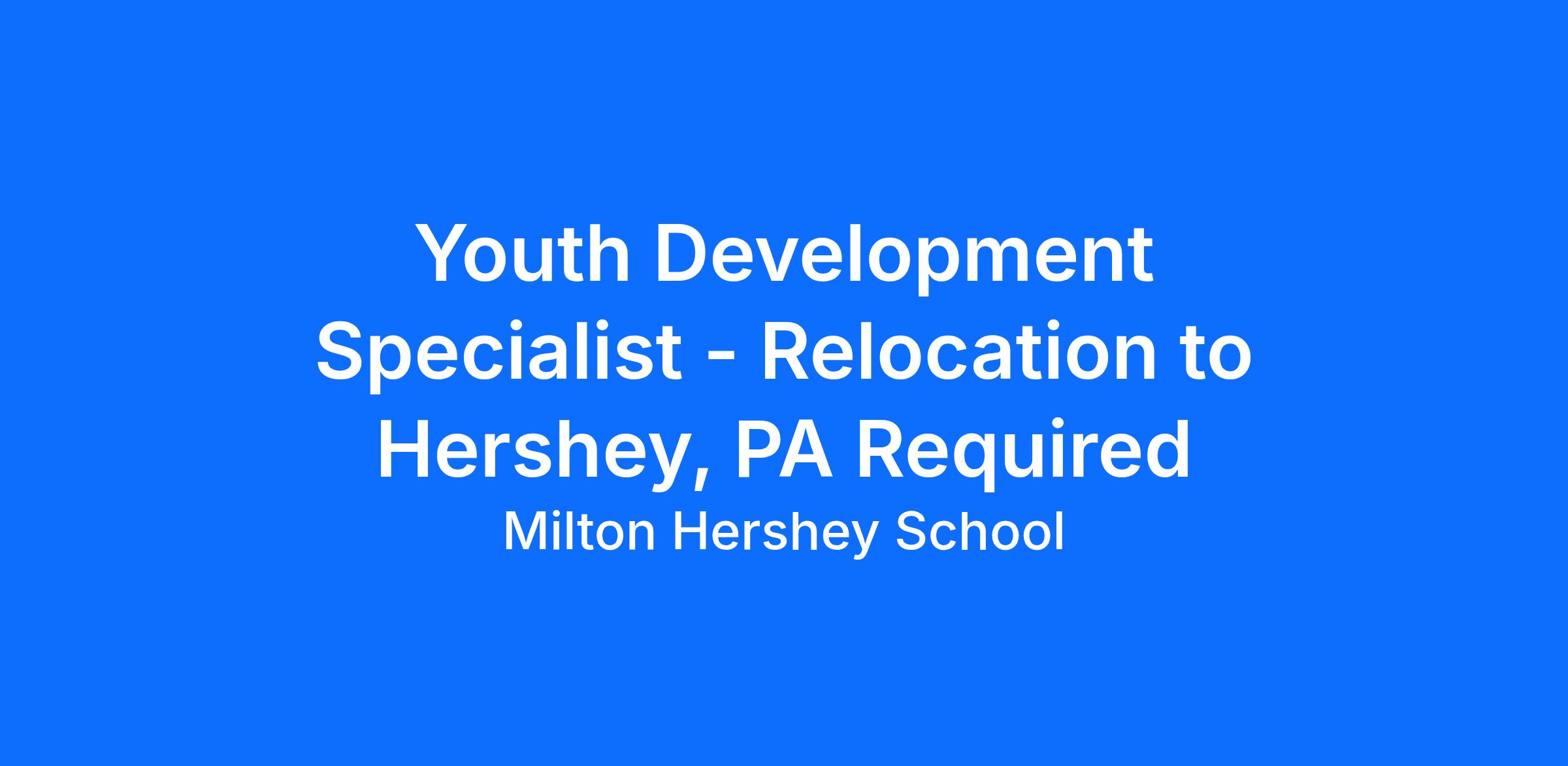 Youth Development Specialist - Relocation to Hershey, PA Required